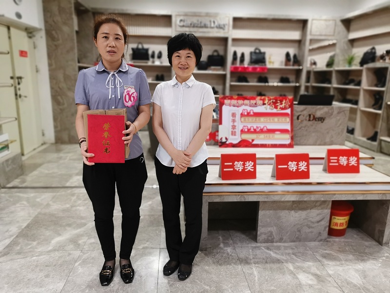 通过目测顾客手掌的大小、宽度及身高体型,快速估算出顾客所需鞋子的尺码,是鞋区营业员必备的业务技能。比赛为3分钟之内通过目测模特手掌大小,快速估算模特所需尺码,经过激烈的角逐,最终来自新华联卖场的雷玉玲凭借丰富的工作经验与用心的总结以“用时33秒 18″8个”的成绩获得擂主。
