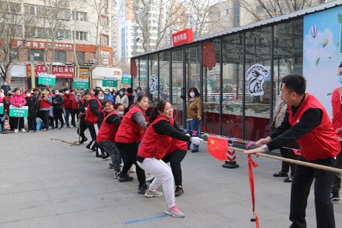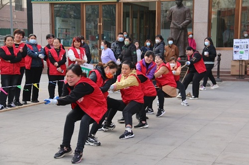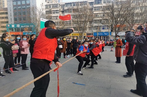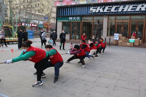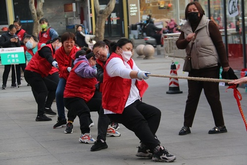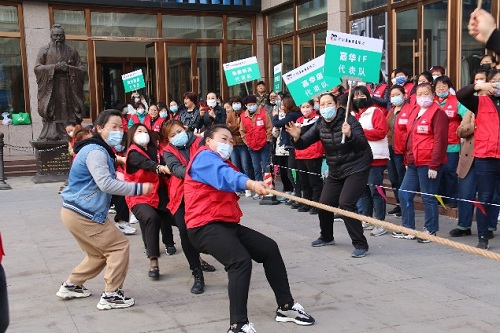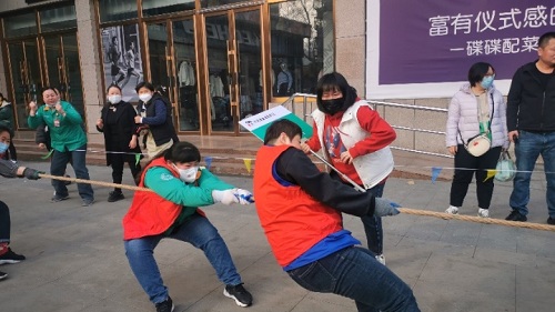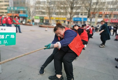 赛场外:各分会领队挥舞着双臂,喊着“一二”指挥队员协调比赛节奏、劲往一处使,啦啦队员挥拳跺脚,使出浑身解数为自己参赛队呐喊助威,都恨不得亲自上场拉一把。加油声、哨声此起彼伏,飘荡在整个嘉华东广场的上空,整个场面既激烈又温馨!