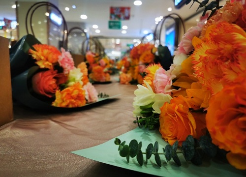 经过大家精巧的修饰与加工之后,现场的花束逐渐蜕变成为一件件赏心悦目、错落有致、别出心裁、创意十足的花艺作品。花团锦簇的花艺中也映衬着一张张灿烂满意的笑脸。女嘉宾们对自己的作品爱不释手,纷纷拿出手机拍照,活动现场处处洋溢着花香和欢笑。 花香弥散在空气之中,在一修一剪之间,在感受美、欣赏美、创造美的过程中,女嘉宾们在华联收获了满满的幸福,度过了一个有意义的“女神”节。此次活动在温馨、欢乐的氛围中圆满结束。