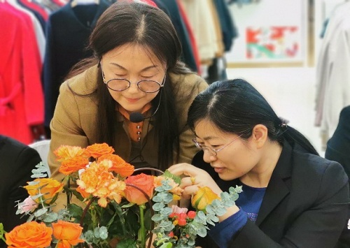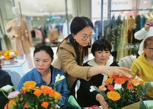 活动在轻柔的音乐声中拉开序幕。首先由集团工会副主席对女嘉宾致以节日的祝福及感谢。感谢企业忠诚顾客,感谢她们对华联一直以来的支持和信任;感谢社区优秀党政干部,感谢她们对华联的帮助,企业才得以健康发展;感谢华联集团最美华联人,感谢她们在工作岗位上无私的奉献及付出。感谢在场所有女嘉宾长久以来与企业一路相伴,一路同行,感恩于心。 接下来的环节,由花艺师为嘉宾开启“花艺入门知识”。从插花艺术的起源、花卉的种类、色彩搭配及日常养护小技巧,各种花所蕴含的花语及祝福,再到花卉的选择、颜色的搭配、花枝长短的修剪以及如何将花卉错落有致的摆放等方面进行详细讲解。