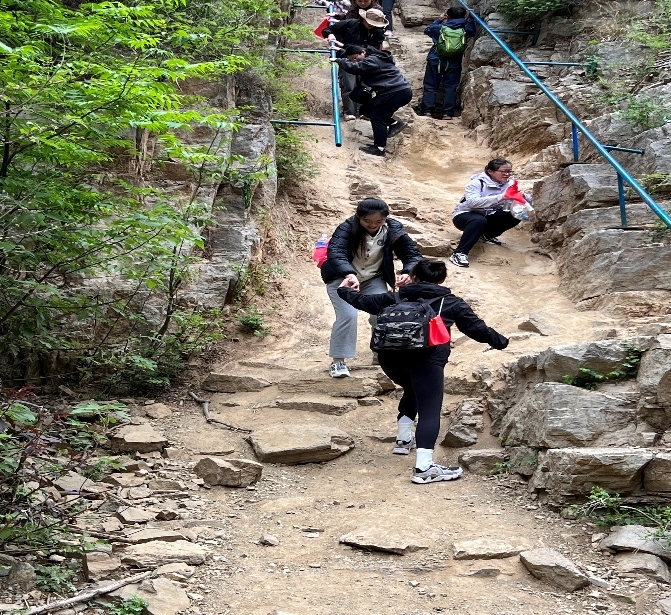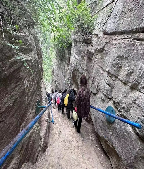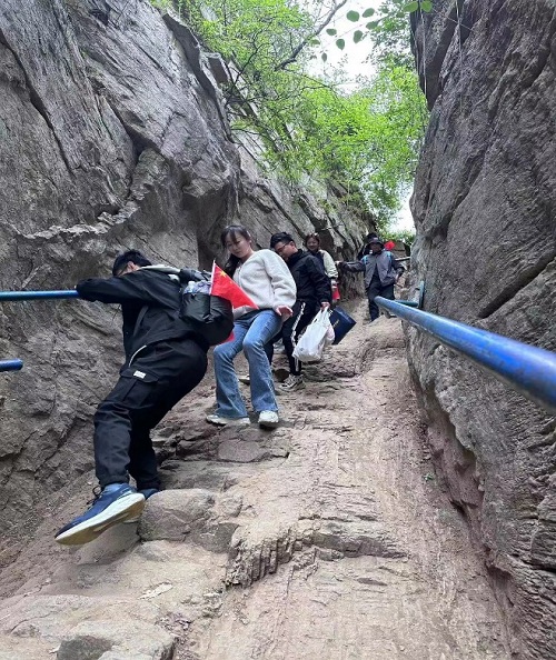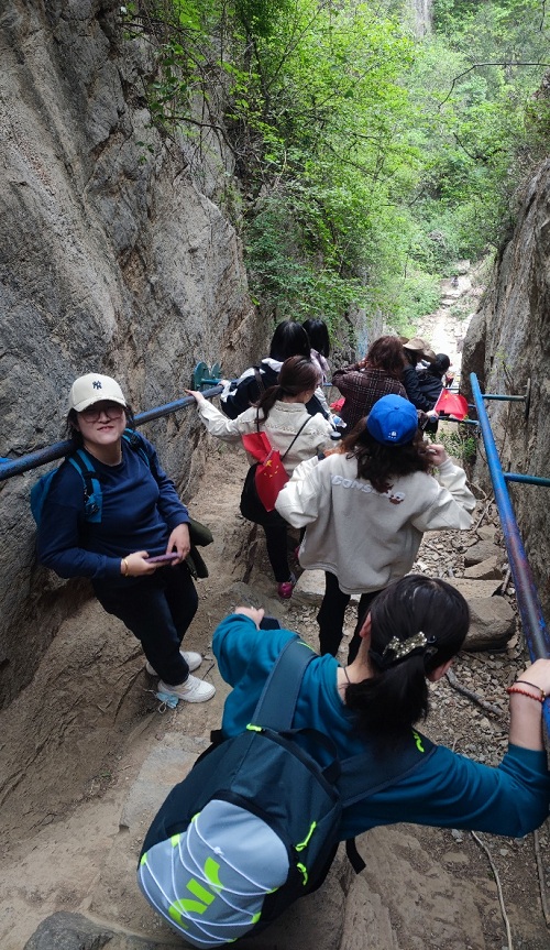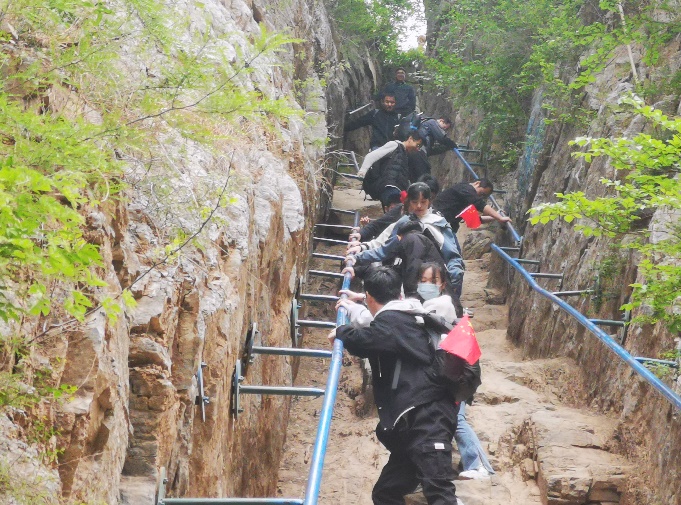 藏龙涧,或悬崖峭壁或羊肠道,或视野开阔或一线天,很多景点需要大家协作才能顺利通过。青年志愿者互帮互助,团结协作,相互了解、彼此融入。