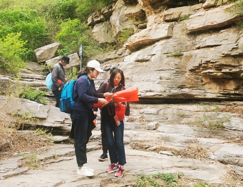 徒步过程中,青年志愿者张梦和另外几位小伙伴走在队伍的最前列,期间不断询问领队关于藏龙涧的一些地势情况及路线,别看她们年龄小,身体素质却相当的不错,一直是团队队伍的排头兵,活动中展现了青年志愿者的风采及活力。